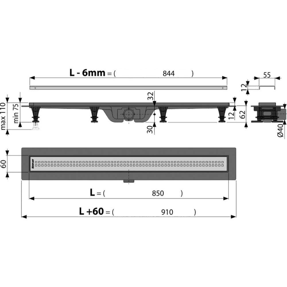 - Диаметр слива - 40 мм