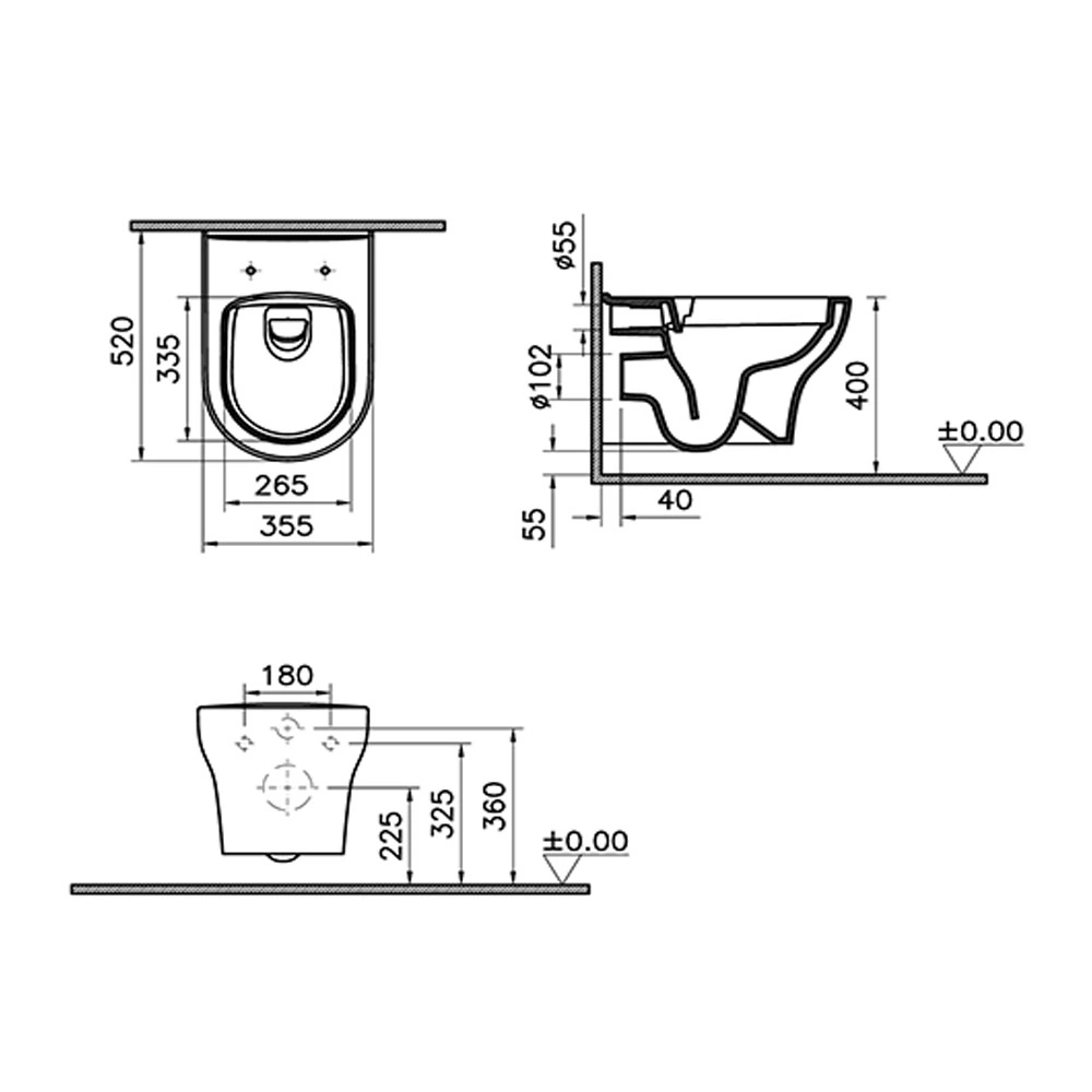 - Унитаз подвесной с сиденьем - 520x355x360 мм