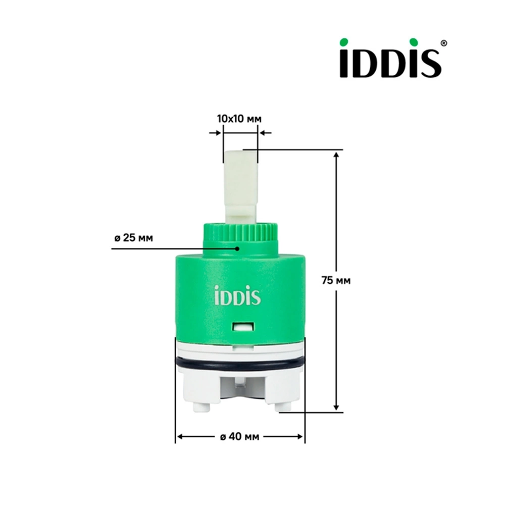 Описание картриджа для смесителя Iddis Картридж поставляется в фирменной индивидуальной упаковке Материал - керамика/полиамид Диаметр картриджа - 40 мм С ножками - да Гарантия - 3 года Производство - Россия, Iddis