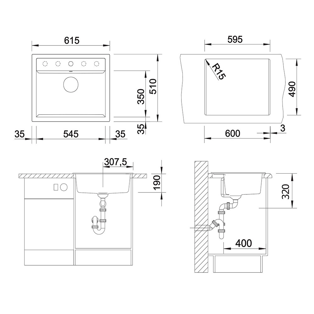- Общий размер - 615x510x190 мм