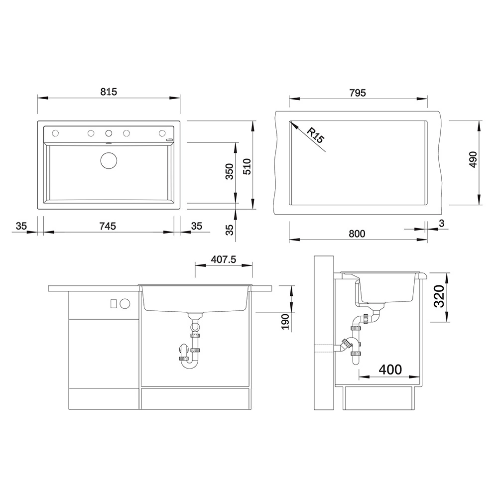 - Общий размер - 815x510x190 мм