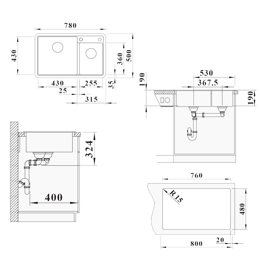 - Количество чаш - 2-секционная
