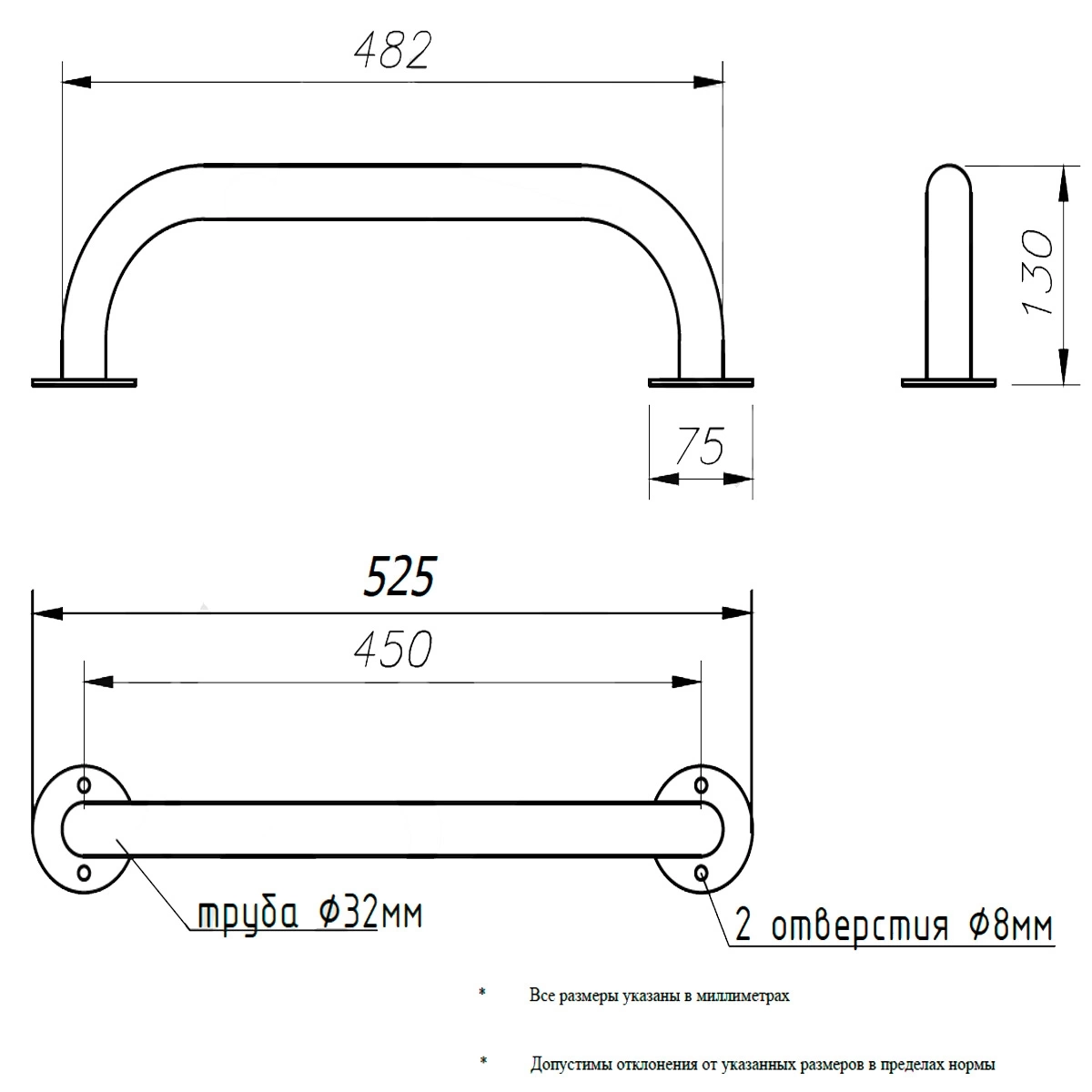 - Тип поручня - настенный-опорный