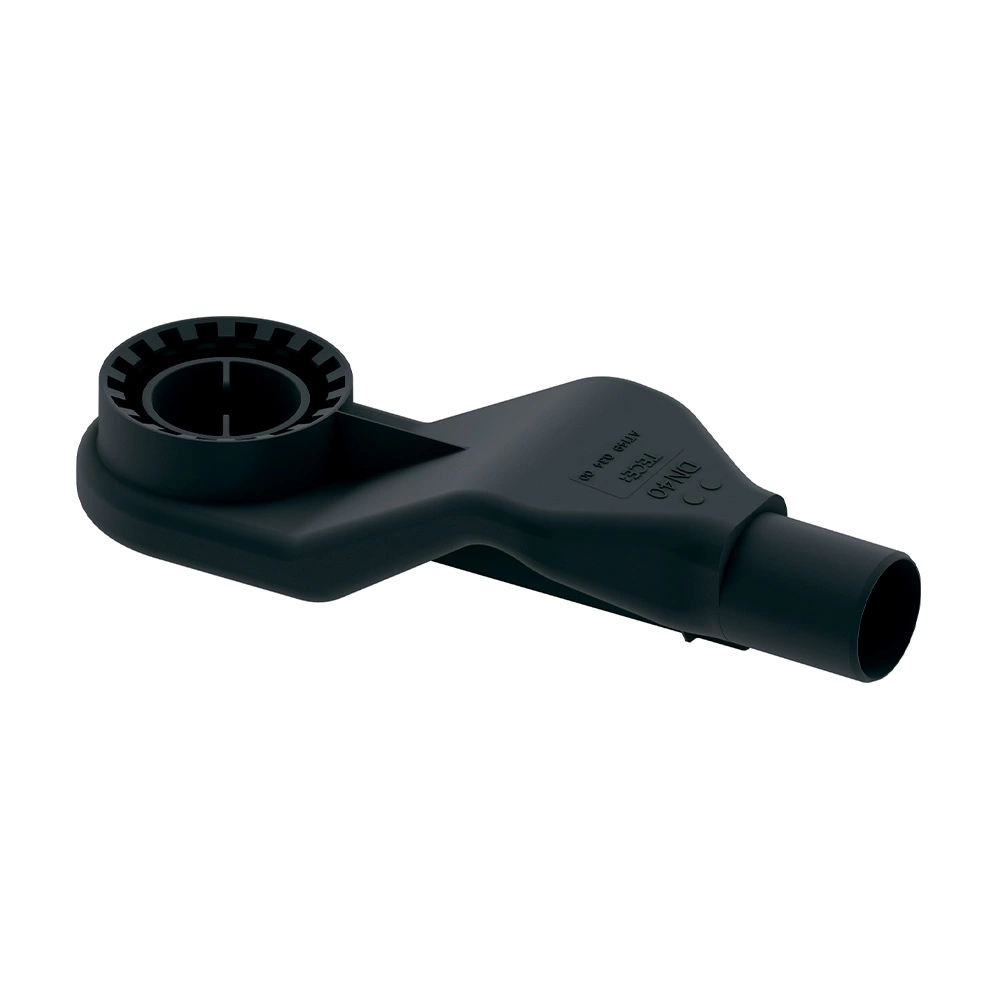 Сифон TECEdrainline низкий для душевого канала, образующий поворотное соединение в корпусе канала, боковое соединение с канализационной трубой DN 40, съемная погружная трубка сифона. Ввиду низкой высоты монтажа в зоне слива невозможно обеспечить достаточное покрытие бетонной стяжки. Поэтому для предотвращения растрескивания рекомендуется использовать только плитку большого размера с армированием.