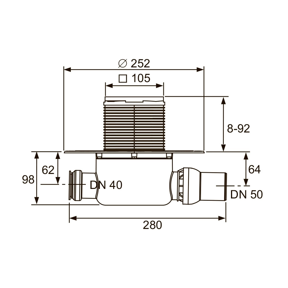- Высота гидрозатвора - 50 мм